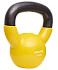 Сверху гиря покрыта слоем винила. Контрастная вставка не только придает снаряду презентабельный вид, но не царапает поверхность напольного покрытия. Благодаря ей спортивный инвентарь не издает много шума при случайных падениях.