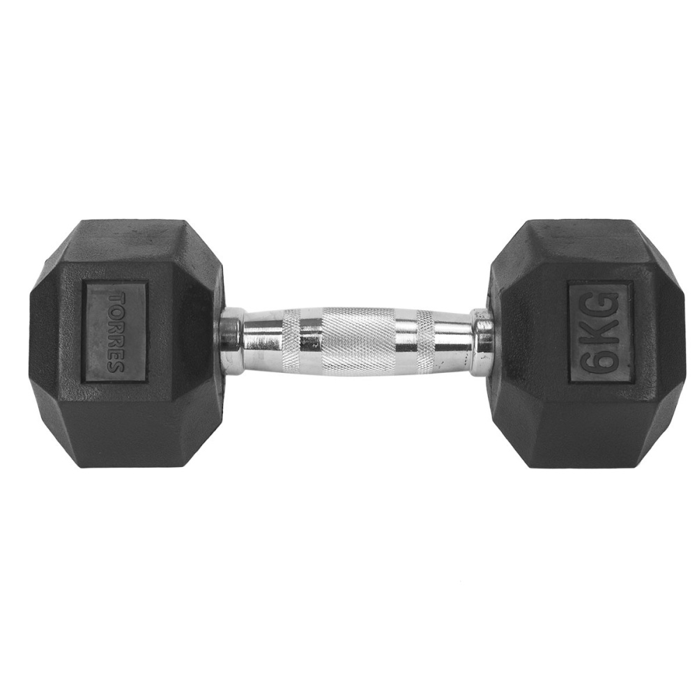 Металлическая ручка с насечками имеет эргономическую форму, что обеспечивает прекрасный захват и предотвращает выскальзывание даже при самых активных тренировках. Литая (не наборная) конструкция обрезиненных дисков-шестигранников, делает снаряд более стабильным. Форма шестигранника обеспечивает хорошую устойчивость на полу, предотвращает перекатывание гантелей, а так же делает возможным и нужным использование этих гантелей как упоров для отжимания.