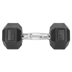 Металлическая ручка с насечками имеет эргономическую форму, что обеспечивает прекрасный захват и предотвращает выскальзывание даже при самых активных тренировках. Литая (не наборная) конструкция обрезиненных дисков-шестигранников, делает снаряд более стабильным. Форма шестигранника обеспечивает хорошую устойчивость на полу, предотвращает перекатывание гантелей, а так же делает возможным и нужным использование этих гантелей как упоров для отжимания.