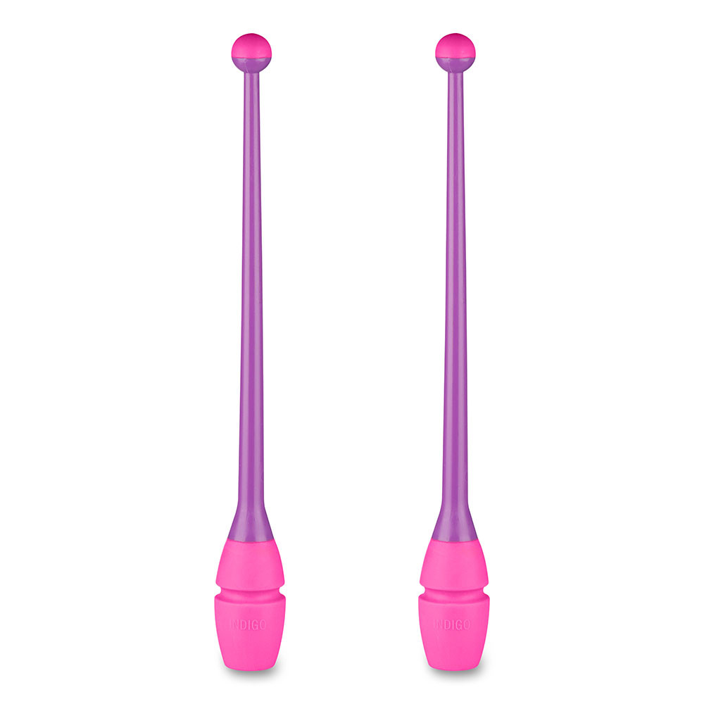 Булавы для художественной гимнастики INDIGO выполнены из двух материалов: ручка - из термопластика, голова булавы - из каучука.