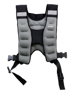 Универсальный размер: регулировка производится боковыми ремнями с фиксацией на застежках. Две светоотражающие вставки повышают безопасность любителей бега в темное время суток. Для равномерного распределения веса наполнителя жилет прострочен в 17 местах.