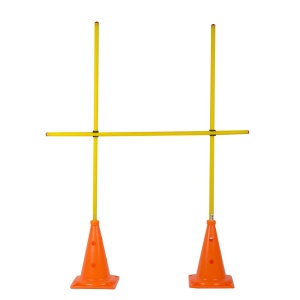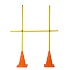 Комплект из вертикальных стоек состоит из трёх гимнастических палок, которые вставляются в конусы с втулками, а при помощи клипс можно закрепить палку горизонтально.