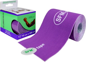 Лейкопластырь кинезио тейп SFM, 10 см Х 500 см, с логотипом изготовлен из хлопка с нанесением на него клейкой гипоаллергенной основы. Кинезиотейп SFM 10 см на 500 см используется для профилактики и лечения травм опорно-двигательного аппарата, способен быстро уменьшить боль и воспаление, как при спортивных травмах, так и в повседневной жизни.