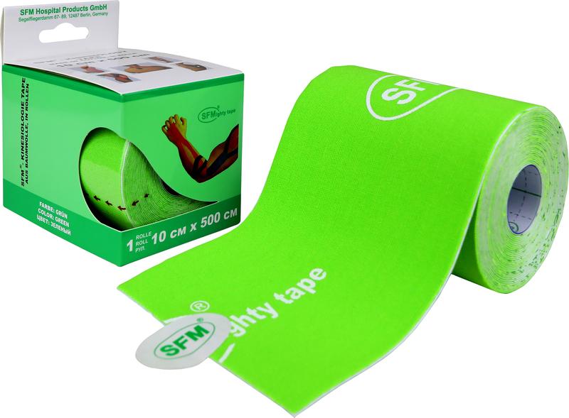 Производство SFM Hospital Products GmbH, Германия длина – 500 см; ширина  - 10 см; основа - тканевая; легко отрезать; эластичный; воздухопроницаемый;          хорошо приклеивается; просто снимается;            есть предел прочности при растяжении;                без латекса;         рулон с бумажным сердечником; назначение - спортивная медицина; упаковка - диспенсер; срок годности - 5 лет; фасовка – 6 шт. в коробке;