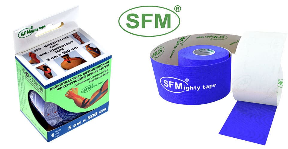 Производство SFM Hospital Products GmbH, Германия длина – 500 см; ширина  - 5 см; легко отрезать; эластичный; воздухопроницаемый;          хорошо приклеивается; просто снимается;            есть предел прочности при растяжении;                без латекса;         рулон с бумажным сердечником; назначение - спортивная медицина; упаковка - полиэтиленовая пленка и коробка; срок годности - 5 лет; промежуточная упаковка – 6 шт. в коробке;