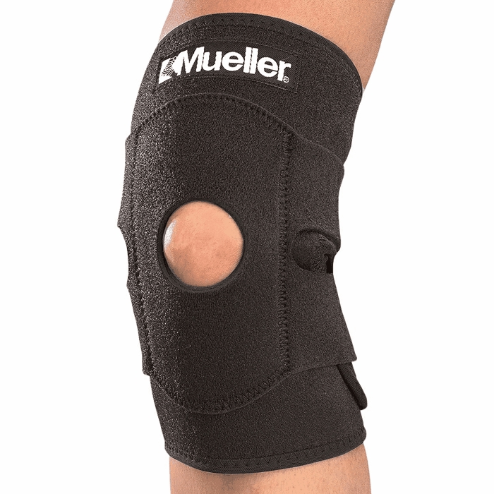 Регулируемый бандаж на колено (наколенник, фиксатор) с открытой коленной чашечкой. Используемая в этом наколеннике запатентованная система крепления ремнями позволяет удобно зафиксировать бандаж над и под коленной чашечкой. Наколенник обеспечивает поддержку сустава без ограничения в движениях. Характерная двойная прокладка вокруг коленной чашечки сделана для максимальной защиты.