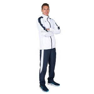 • Спортивный тренировочный костюм с контрастными боковыми вставками изготовлен из 100%-ного полиэстера.
