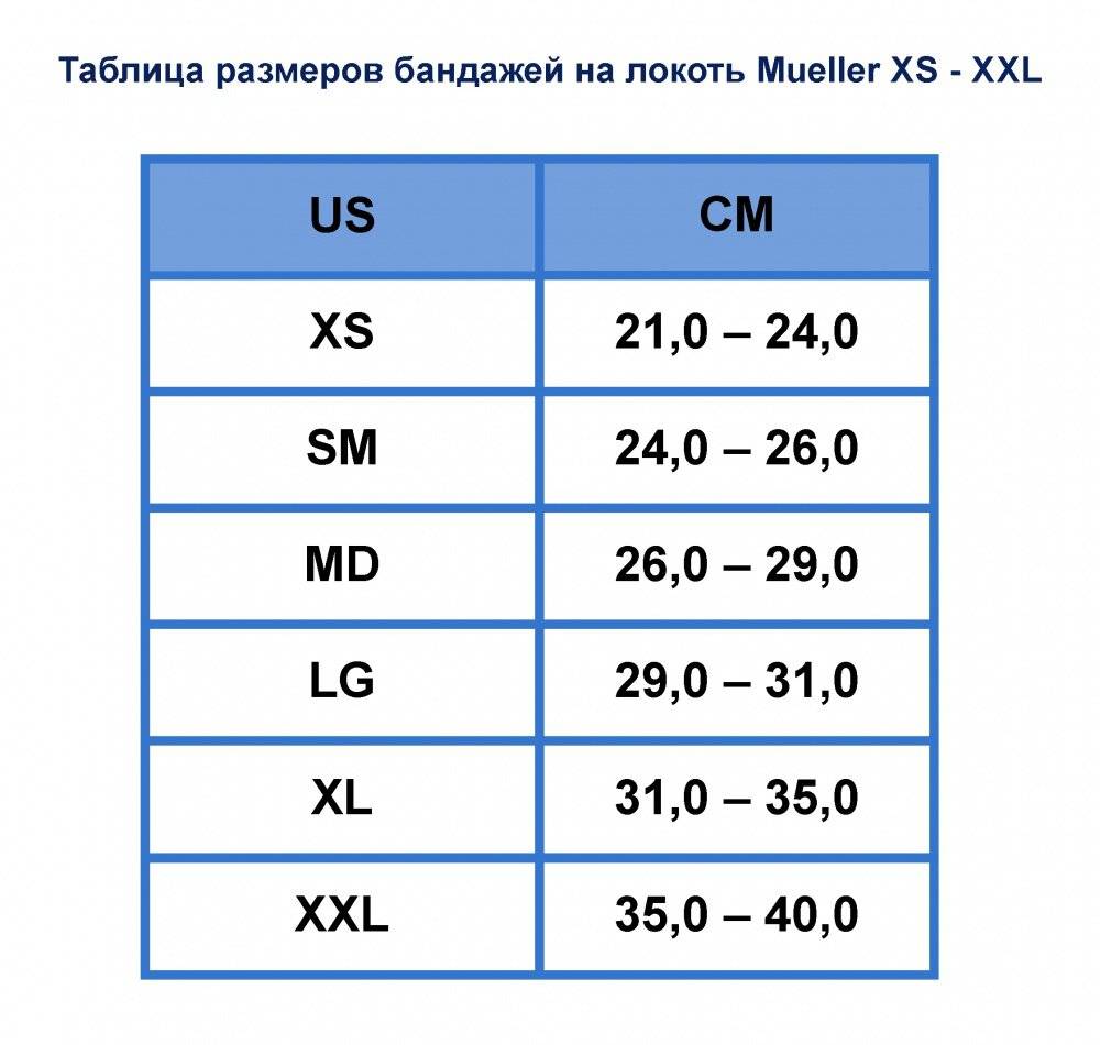 Подбор размера по окружности локтя: