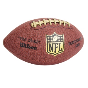Логотип NFL и шнуровка, выполненные в золотистом цвете,что делает мяч ярким и привлекательным.