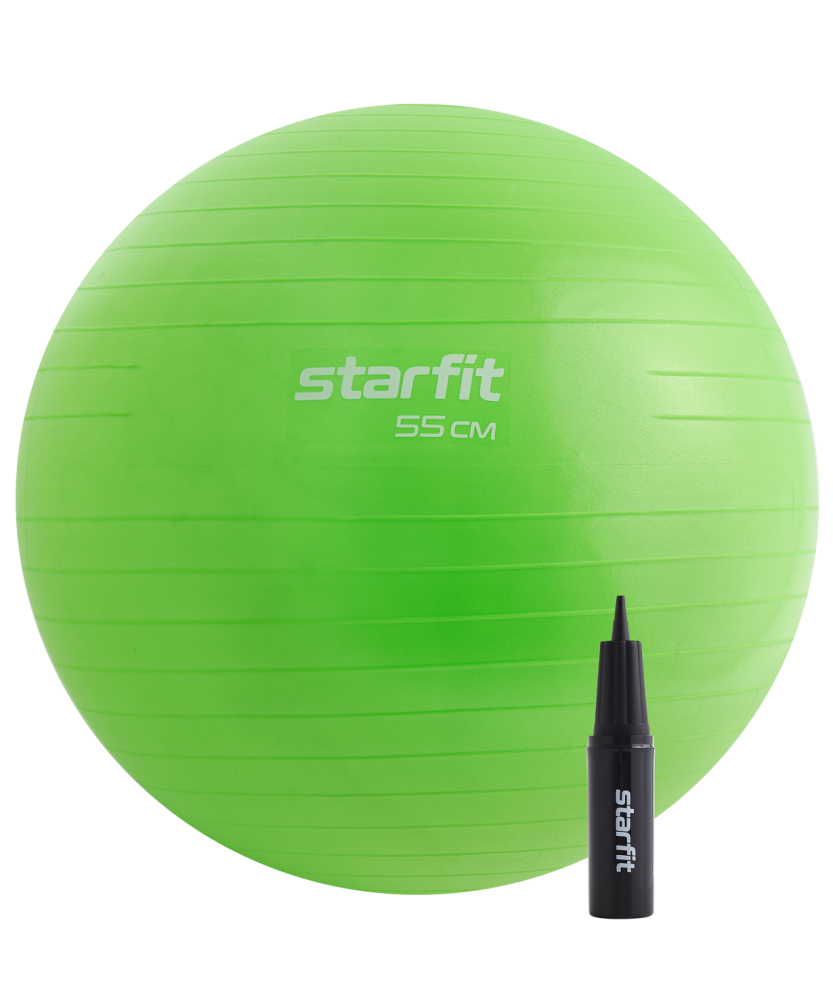 Фитбол STARFIT GB-106 55 см, 900 гр, антивзрыв, с ручным насосом - это гимнастический мяч бренда Starfit, с помощью которого можно тренировать все мышцы тела, правильно выстроив тренировочный процесс и используя его как основной или второстепенный снаряд при выполнении упражнений (создавая за счет него лишь синергизм действия).