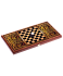 Нарды (с цветным рисунком) средние - яркая цветная модель популярной настольной игры. В набор включено все необходимо - доска из натурального дерева, деревянные удобные шашки и два игральных кубика (зары).