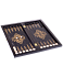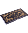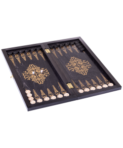 Нарды средние "Тигры" - модель популярной настольной игры. В набор включено все необходимое: доска, деревянные удобные шашки и два игральных кубика (зары). Доска выполнена из фанеры, мореной в черный цвет, рисунок (шелкография) золото, покрытие грунт, лак.