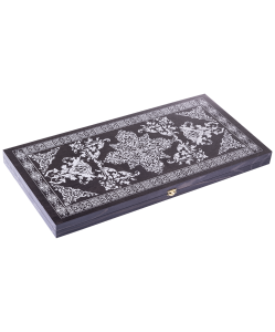Нарды дорожные "Вьюн" - модель популярной настольной игры. В набор включено все необходимое: доска, деревянные удобные шашки и два игральных кубика (зары). Доска выполнена из фанеры, мореной в цвет венге, рисунок (шелкография) серебро, покрытие грунт, лак.