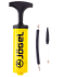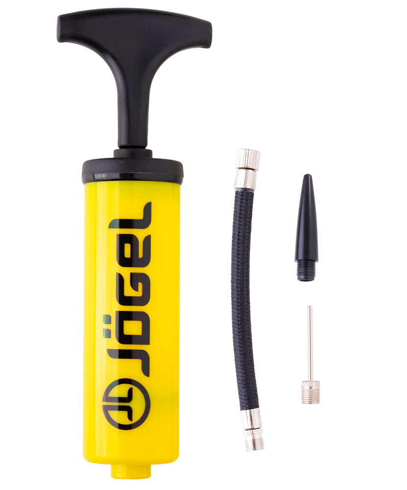Универсальный ручной насос желтого цвета с Т-образной ручкой. Эффективен при накачке мячей любых типов. Благодаря небольшим габаритам и удобной упаковке, его легко брать собой в поездку. В комплект входит гибкий съемный шланг под автомобильный ниппель Schrader , стандартная игла с диаметром резьбы 7 мм и насадка для фитбола. Данная модель не подходит для накачивания велопокрышек.