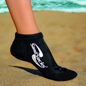 Хотя пляжные носки Sand Socks защищают от различных опасностей, но они не предназначены для постоянного воздействия таких факторов. Если носки используются на грубых поверхностях, то лучше использовать дополнительную обувь.