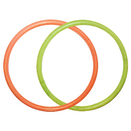 Цвета обручей могут быть различными (например, на фото они представлены в салатовом и оранжевом цветах), в наборе (упаковке) из 3 шт. обручи также различных цветов.