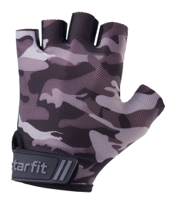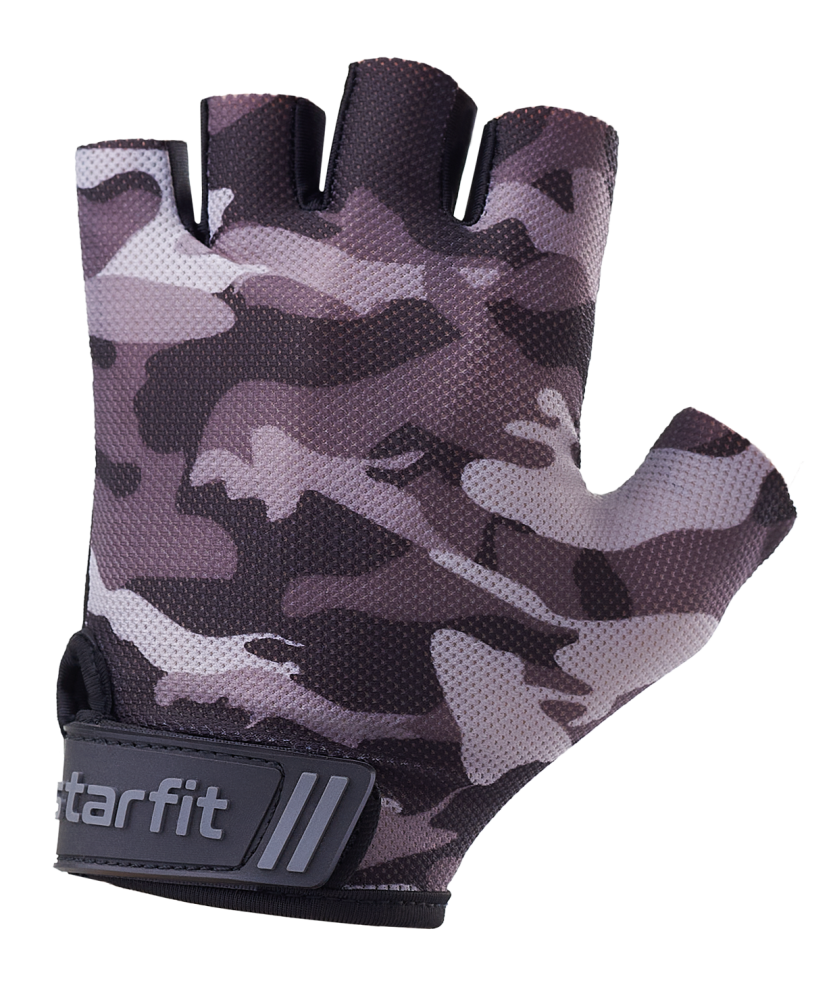 Спортивные перчатки WG-101 от STARFIT – необходимый аксессуар для фитнеса. Они обеспечивают комфорт спортсмена во время подтягиваний и отжиманий, делают безопасней занятия на тренажерах. Перчатки для фитнеса повышают качество тренировочного процесса с различными снарядами, минимизируют риск образования мозолей и ссадин на ладонях при работе со штангой и гантелями. Тыльная сторона атлетических перчаток выполнена в актуальном дизайне «камуфляж». Материал эластичен, обеспечивает достаточную вентиляцию и отводит влагу с ладоней. Мягкая набивка из полиэстера повторяет контуры кисти и добавляет еще больше комфорта во время тренировок. Спортивные перчатки без пальцев удобно сидят на руке благодаря регулируемой велкро-липучке, а значит, не соскользнут в самый ответственный момент. Спортивные перчатки оптимальны не только для фитнеса и силовых тренировок, они хорошо зарекомендовали себя при занятиях кроссфитом и уличными видами спорта. Получите максимум удовольствия от тренировок без мозолей вместе с перчатками для фитнеса WG-101 от STARFIT!