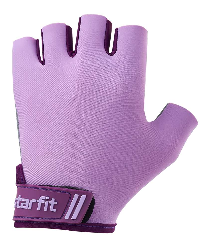 Спортивные перчатки WG-101 от STARFIT – необходимый аксессуар для фитнеса. Они обеспечивают комфорт спортсмена во время подтягиваний и отжиманий, делают безопасней занятия на тренажерах. Перчатки для фитнеса повышают качество тренировочного процесса с различными снарядами, минимизируют риск образования мозолей и ссадин на ладонях при работе со штангой и гантелями. Тыльная сторона атлетических перчаток выполнена в актуальном фиолетовом цвете. Материал эластичен, обеспечивает достаточную вентиляцию и отводит влагу с ладоней. Мягкая набивка из полиэстера повторяет контуры кисти и добавляет еще больше комфорта во время тренировок. Спортивные перчатки без пальцев удобно сидят на руке благодаря регулируемой велкро-липучке, а значит, не соскользнут в самый ответственный момент. Спортивные перчатки оптимальны не только для фитнеса и силовых тренировок, они хорошо зарекомендовали себя при занятиях кроссфитом и уличными видами спорта. Получите максимум удовольствия от тренировок без мозолей вместе с перчатками для фитнеса WG-101 от STARFIT!
