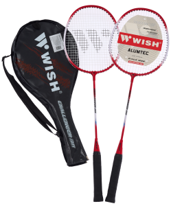 Набор ракеток для бадминтона Wish состоит из двух ракеток изометрической формы и чехла. Комплект оптимален для начинающих игроков! Жесткая конструкция и универсальный баланс ракеток для бадминтона Wish позволяют играть с максимальным комфортом, а стальной стержень и алюминиевый обод ракетки обеспечивают высокую ударопрочность. Изометрическая форма головы выравнивает длину продольных и поперечных струн на поверхности ракетки. Такая конфигурация повышает точность игры благодаря увеличенной ударной площади. В набор для бадминтона на 2 ракетки входит укороченный чехол 3/4, который удобно нести на плече.