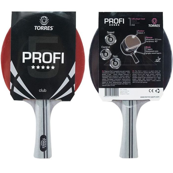 Ракетка Profi 5* разработана для профессиональных игроков, амплуа которых - нападение, а цель - только победа! Сильные и разнообразные вращения, мощные удары и топспины, игра в разных зонах, все это возможно благодаря сочетанию семислойного основания из дерева Гинго с центральным слоем из Липы американской, одобренными ITTF липкими накладками Double Fish Volant 1 и мягкой губки 2,0 мм.