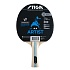 Одобренная ITTF (Международной федерацией настольного тенниса) накладка с губкой толщиной 2 мм, коническая ручка.