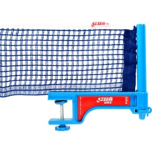Сетка для настольного тенниса для любительской игры в комплекте с пластмассовыми стойками. Регулировка натяжения полипропиленового шнура за счет колечек. Черная, белая верхняя ограничительная лента из полиэстера, упаковка - фирменная картонная коробка.