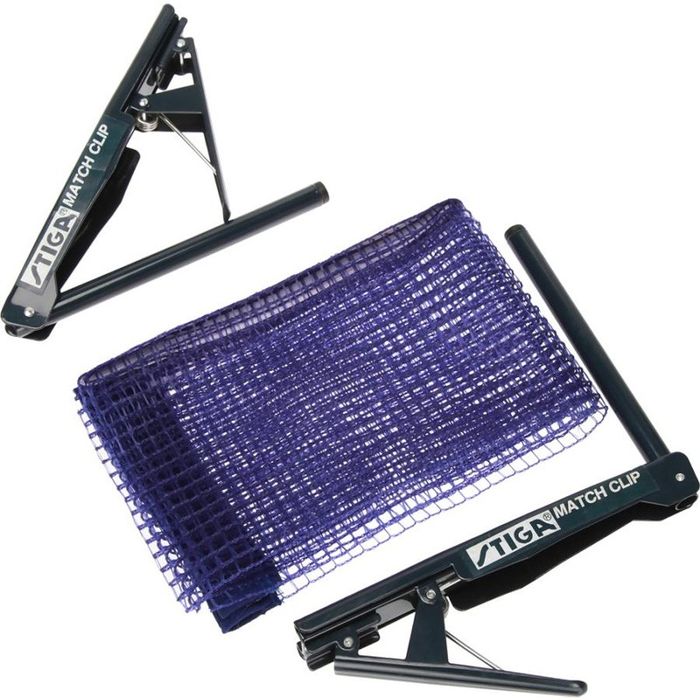 Сетка для настольного тенниса матчевого уровня. Металлические стойки крепятся к столу через резиновые прокладки, защищающие стол от повреждений удобными клипсами. Материал сетки нейлон. Регулировка натяжения сетки.