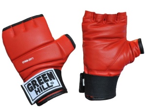Обрезанные снарядные перчатки Green Hill CFBM-2077-RD (шингарты). Изготовлены из натуральной кожи, ударная поверхность с утолщением. Используются для отработки ударов по боксерскому мешку или специальной подушке. Широкий, эластичный манжет на "липучке".