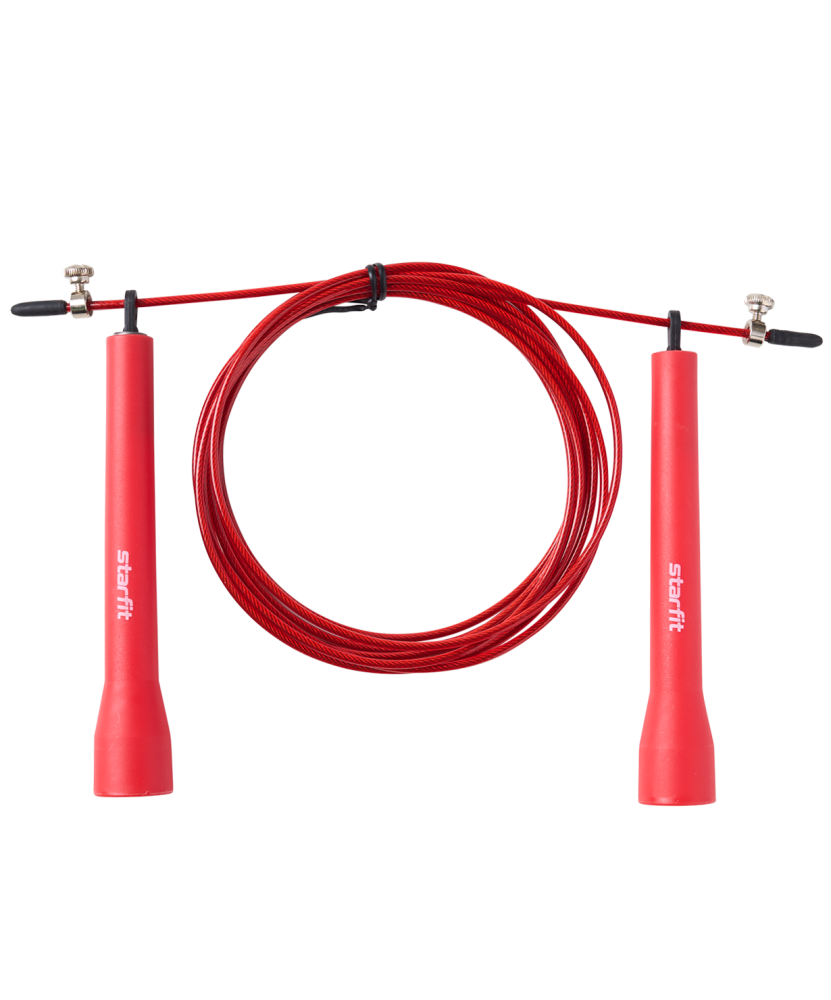 Скакалка скоростная RP-202 бренда STARFIT – многофункциональный спортивный инвентарь для фитнеса дома или на улице. Данная модель имеет удобные ручки. Легкие и приятные к коже, они обеспечивают надежный хват. Встроенные подшипники позволяют увеличить темп прыжков и повышают плавность хода шнура, а для безопасности тренировок стальной трос покрыт прозрачным защитным слоем. Длина регулируется с помощью специального ограничителя.