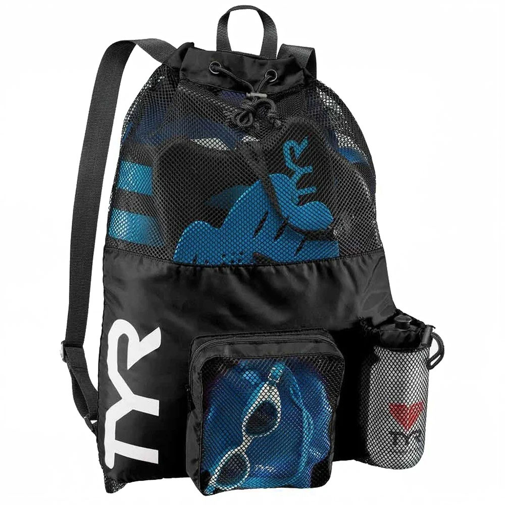 Рюкзак "TYR Big Mesh Mummy Backpack" - компактный спортивный рюкзак из прочного материала. Мешок TYR является идеальным выбором для транспортировки влажной плавательной экипировки. Его очень комфортно носить на спине благодаря удобным лямкам и сетчатой проветриваемой поверхности. Мешок сделан из легкого и прочного материала, который обеспечивает долгий срок службы. Мешок имеет боковой карман на молнии и карман для бутылки. Благодаря устойчивости к влаге можно брать с собой как в бассейн, так и на пляж.