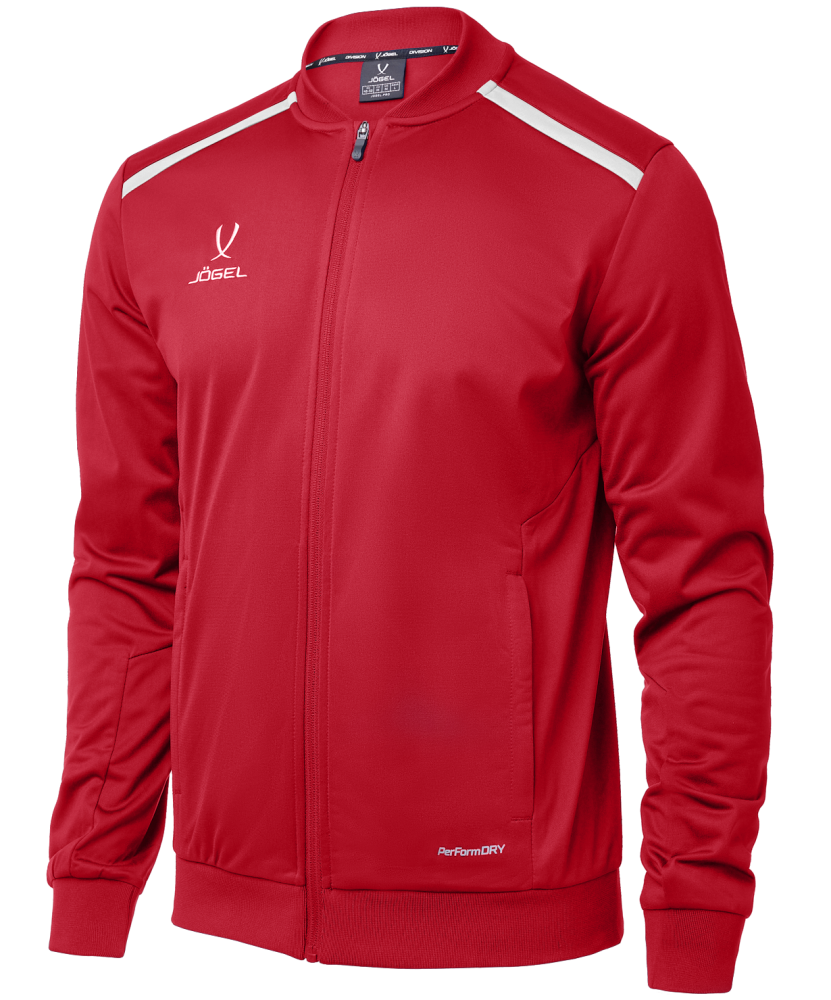 Pre-match Knit Jacket - комфортная олимпийка в классическом спортивном стиле. Модель из плотной бондированной ткани предназначена для профессиональных команд и любителей, а также для носки на каждый день. Передняя застежка и боковые карманы застегиваются на молнии и дополнены логотипом JÖGEL. Ткань, специально разработанная для данной линейки, состоит из нескольких слоев и имеет функцию PerFormDRY, придавая достаточную плотность, но сохраняя мягкость и легкость спортивной олимпийки. Оптимальное прилегание обеспечивается рифленым полотном, из которого изготовлены воротник, манжеты и пояс. Атлетический крой спортивной олимпийки подчеркивается эксклюзивным дизайнерским решением в виде контрастных полос, расположенных спереди на кокетке, а вышивка JÖGEL справа на груди завершает образ. Pre-match Knit Jacket идеально сочетается со спортивными брюками JÖGEL DIVISION PerFormDRY Pre-match Knit Pants.