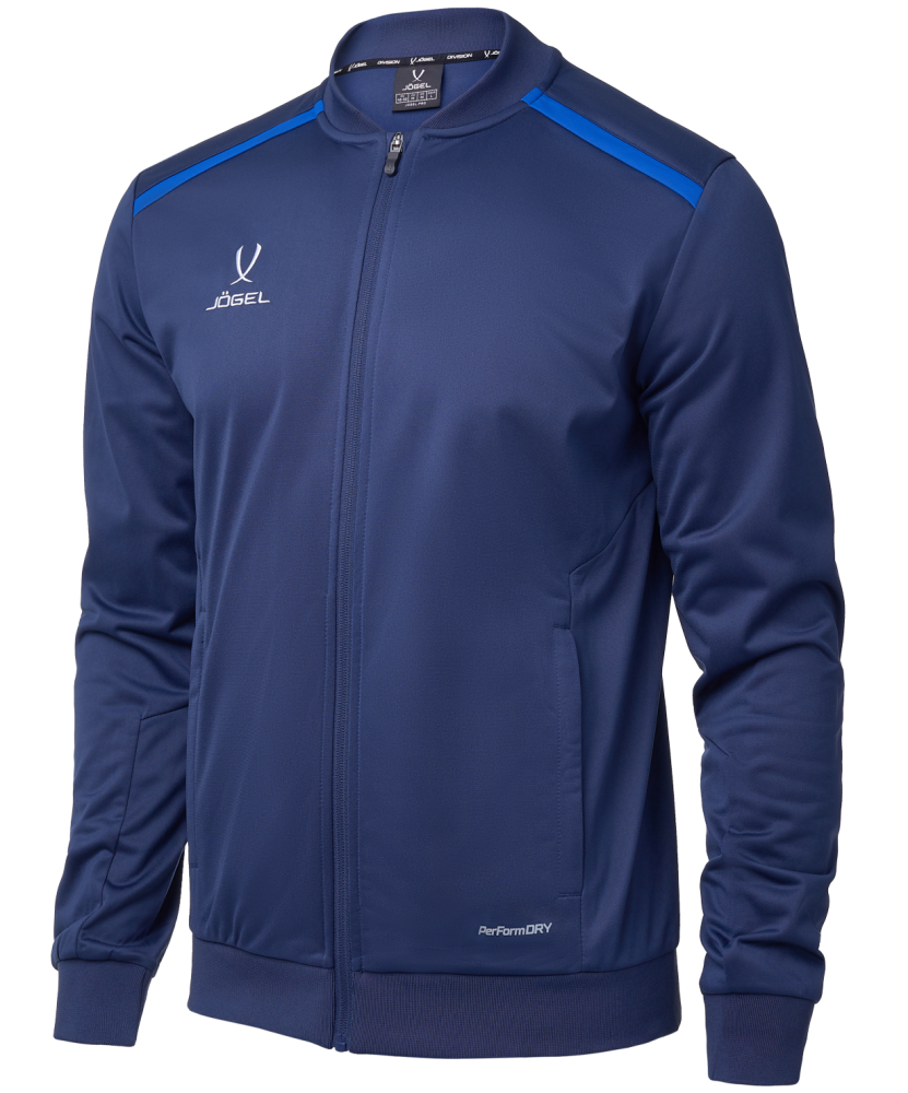 Pre-match Knit Jacket - комфортная олимпийка в классическом спортивном стиле. Модель из плотной бондированной ткани предназначена для профессиональных команд и любителей, а также для носки на каждый день. Передняя застежка и боковые карманы застегиваются на молнии и дополнены логотипом JÖGEL. Ткань, специально разработанная для данной линейки, состоит из нескольких слоев и имеет функцию PerFormDRY, придавая достаточную плотность, но сохраняя мягкость и легкость спортивной олимпийки. Оптимальное прилегание обеспечивается рифленым полотном, из которого изготовлены воротник, манжеты и пояс. Атлетический крой спортивной олимпийки подчеркивается эксклюзивным дизайнерским решением в виде контрастных полос, расположенных спереди на кокетке, а вышивка JÖGEL справа на груди завершает образ. Pre-match Knit Jacket идеально сочетается со спортивными брюками JÖGEL DIVISION PerFormDRY Pre-match Knit Pants.