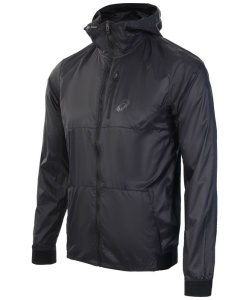 Ветровка беговая ASICS FUZEX TR JACKET 141626 0904 из ветро и влагозащитного материала с регулируемым капюшоном, манжетами на рукавах и на поясе. На груди карман.