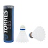 Волан Torres 250, любительского уровня для игры в зале и на улице. Нейлоновая юбка белого цвета. Пробковая "головка" волана с индикаторной лентой синего цвета, что соответствует средней скорости, для игры при температуре от 12 до 23 °С. Высота волана 8 см, диаметр юбки 7 см.